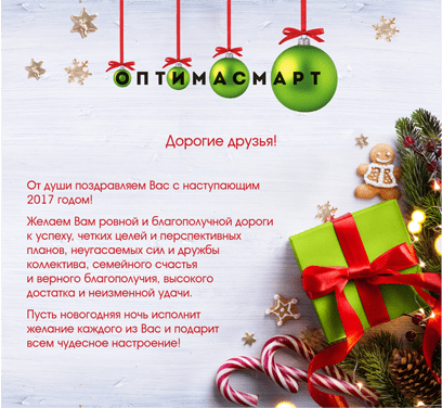 Компания «ОптимасмАрт» желает Вам хорошего и веселого Нового Года! Уходящий год был плодотворным и насыщенным.